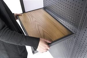 This add-on shelf for SMWMFD modular gondola is 24″ W x 16″ D and is made of oak veneer and solid powder-coated steel for a durable and long-lasting design. Our shelves are sold in sets of two, and each unit has an overall weight capacity of 66 pounds allowing for versatility in the products you choose to display. This add-on shelf for SMWMFD makes it easy to create a unique configuration using our H-shaped rolling gondola.