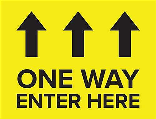 Our directional floor arrows help create a one-way shopping experience in supermarket aisles to maintain public safety. This enter here sign sticker is pre-printed with brightly colored yellow and black graphics to ensure people do not miss directive guidelines. The directional floor arrows leave no residue after removal to keep indoor, outdoor and carpeted surfaces in top shape.