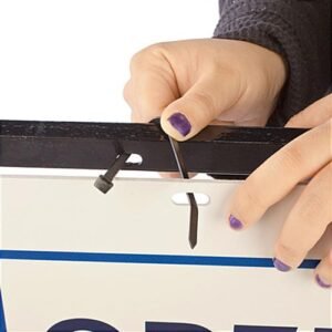 This yard sign frame, also called a political poster holder, is used to inform potential buyers of a home or business for sale. These frames can also be used to display “call to action” posters, such as political advertisements encouraging passersby to vote! The frame is designed to hold (1) 24″ x 18″ sign and (1) 24″ x 6″ rider. This frame is great for use by real estate companies to display “For Sale”, “Open House” and “Sold” notices. Home owners and contractors can advertise their contact information or other important information using these cheap lawn signs. These political signage displays are also widely used to present campaign or election advertisements as well. Store owners could also make use of these signage display frames, to advertise messages or give directions to customers. There is no assembly required with these units, as signage attached directly to the frame with zip ties.