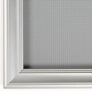 These 24 x 36 frames use a front-loading design providing easy insertion of new graphics. The wall-mounting poster displays have four separate hinges, so users can flip open the molding with ease. These 24 x 36 frames, also known as photo holders, remain in place while updating signage. The silver poster displays are equipped with a non-glare lens protecting the graphics underneath. This overlay keeps fingerprints, dust and debris from harming valuable graphics. These 24 x 36 frames include mounting holes for displaying framing both vertically and horizontally. Mounting locations positioned inside the frame keep hardware out of sight and create a professional and clean-looking presentation. These 24 x 36 frames hold large graphics that are typically preferred for advertising. The silver finish on these print holders are neutral; allowing them to blend with most any commercial environment.