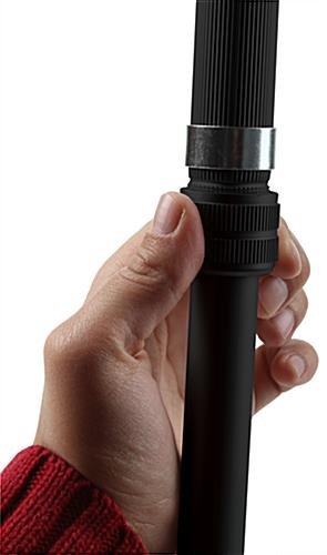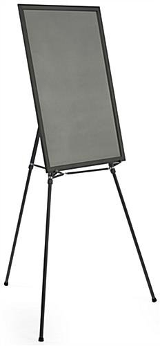 This black easel stand with 24” x 36” snap frame is the ideal sign holder for your ad poster. The portable tripod is equipped with telescoping legs that can be adjusted in height from 45” to 74.75” enabling optimal viewing in crowded events. The easel with snap frame for floor use is multi-functional with the option to use an attachable brace to hang your art from the unit. Using the height to your advantage is incredibly easy by utilizing the rotating clamps on the legs and extending them to your desired elevation. The easel with snap frame becomes portable by retracting the legs and storing in your car or supply closet. Your poster board will get great exposure on the floor with the sign holder constructed from aluminum for durability and long lasting use!