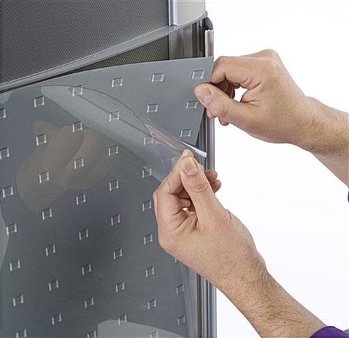 Constructed almost entirely from aluminum, this poster display stand is not a flimsy display. The solid aluminum base, center and top plates have a silver powder coat finish which accents the clear anodized snap rails. This poster stand features a printed bottom poster behind a clear gloss lens that completes this great poster display. Comes fully assembled out of the box!