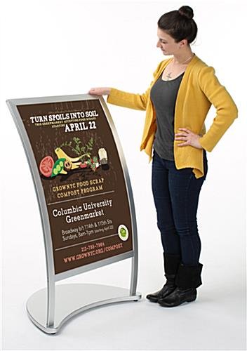 24 x 36 Poster Stand for Floor, Top Insert, C-shaped Curve – Silver