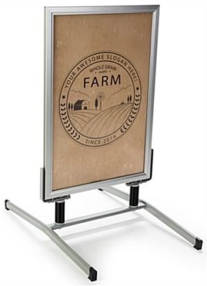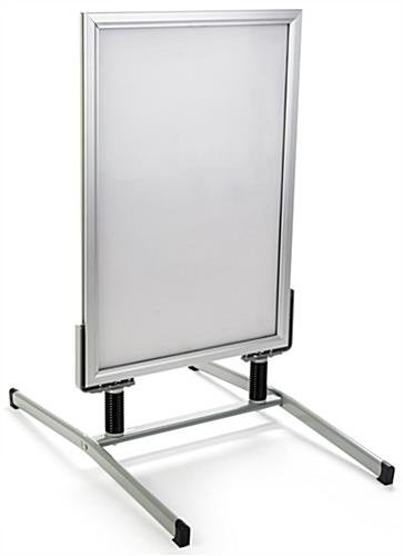 Don’t limit your business to a letter board, instead use poster graphics with this springer sign! Double sided by design, the aluminum sandwich board will attract attention from both directions. Publishing alerts, promotions, or specials is easy with this sidewalk sign featuring snap frames. Update graphics and alternate materials placed on display with a simple flick to open the borders. The anti-glare lens help maintains a visible and vibrant sidewalk advertisement. Each aluminum snap frame houses 24” x 36” media posters. A shock absorbing design allows each springer sign of enduring through inclement weather and wind conditions. Choose a better option than letter boards, rather promote your business on heavily trafficked curbs with media graphics!