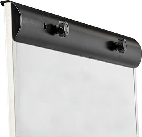 The rolling whiteboard stand features a 24” x 36” write-on dry erase board. Clamp important messages, tables, charts, and more using the magnetic surface of the steel constructed backing. Move the marker display around the office to different meeting areas for interactive presentations and lock the office whiteboard stand in place using the (5) locking caster wheels. The floorstanding model includes a flipchart clamp for a large post-it pad as an alternative to dry erase presentations. The white board face color makes it easy to see all types of colored Expo® pens on the whiteboard stand which can be adjusted to different heights for viewing around the room. An open face frame allows the most use out of the write-on magnetic marker surface to get as much information presented as possible.