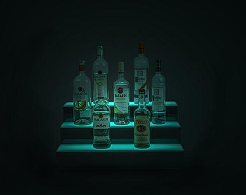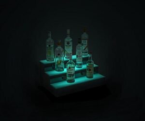 This lighted bottle display beautifully showcases your offerings with multi colored LED illumination. Place this liquor shelf behind your bar and choose from one of the 16 available hues and multiple light modes. Utilizing a rechargeable battery, this 3-tier lighted bottle display can operate for up to 12 hours and quickly charges back up in 4 to 5. Minor spills and condensation are no trouble thanks to the water-resistant construction. With its sleek and clean design, this 3-step shelf for your liquor adds some contemporary styling to your bar, nightclub or home. Whether you’re looking for a way to call attention to what you’ve got on the drink menu or trying to set the mood through multi colored glowing ambiance, this bottle display has the features and flair to make it happen.