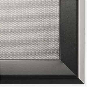 This 27×40 poster frame is great for any business. These print holders are perfect for displaying ads, movie promotions, pictures, & graphics. This 27×40 poster frame with an anti-glare overlay protects your signage from damage. This enables your graphics to be viewed without glare hindering visibility. This 27×40 poster frame, also known as snap frames, is designed for speedy graphic changes, as it features a snap open front. The snap open, front loading design enables users to change out photos without removing the unit from the wall. This 27×40 poster frame that ships assembled features a matte black finish to easily coordinate with any décor. These movie print holders are made from aluminum to withstand years of use.