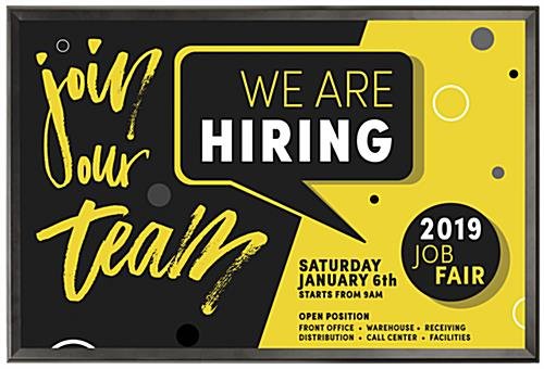 This 27×40 poster frame that is made of aluminum has a front loading design, which makes changing out your posters quick and easy. This movie sign holder is perfect for use within your retail store, restaurant, office, or school. Easy signage changes means more time can be spent assisting customers. This 27×40 poster frame that is easy to install can be mounted vertically or horizontally. The versatile design of this sign holder, and the classic black finish, make this framing perfect for use in any setting. Buy this 27×40 poster frame to promote a new release, or upcoming live event!