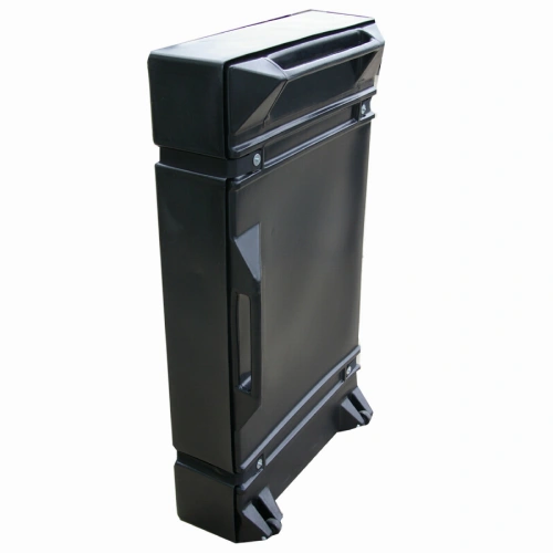 Use this tradeshow crate to protect and secure most any flat display or accessory. This trade show case is intended for storing modular exhibit panels between shows. This crate holds items 48″ long by 25″ wide. The design of this trade show case allows it to hold anything from 7″ to 10″ deep. Made from tough LDPE plastic with heavy duty wheels. The trade show case for sale here features handles on two sides to allow for easy maneuvering and loading. Securing straps are fastened to the bottom of the container, and connect to each other using quick release buckles. This trade show case has an overall size of 27″ x 50″ x 10″ and weighs 30 lbs.