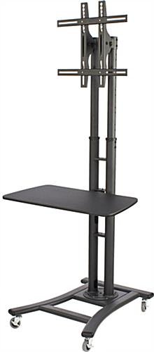This TV shelf is designed for use exclusively with MB Series television stands. The large black TV shelf provides an area for storage and display of items underneath a flat screen LCD or Plasma TV. This TV shelf is perfectly utilized in many different environments. Hotels can place a Plasma TV stand in their lobby and use a TV shelf to hold a DVD player or local newspapers or magazines. Medical facilities will find this shelf a helpful TV stand add-on for use as working station in a laboratory or even bedside in a patient room. The TV shelf, also known as a storage console, is ideal for tradeshows to display product samples, supporting literature or to hold a product demonstration with the aid of a laptop or other media equipment.