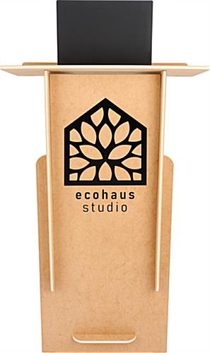 This collapsible podium with custom graphics offers the perfect branding opportunity for eco-conscious traveling presenters or performers. With its durable FSC certified hardboard construction, this sustainable lectern is designed with the planet in mind. It features a modular knockdown design that easily assembles and breaks down with no tools required, and digital instructions are easily accessible through a QR code printed on the unit. The environmentally friendly collapsible podium features full-color UV printing that will make a lasting impression on your audience. Need to store personal items or presentation materials? This sustainable unit features two hidden storage shelves holding up to 25 pounds each, providing you with ample compartment space. This environmentally friendly lectern is perfect for performers, pop-up events, classrooms, trade shows, and more. Pair this personalized, collapsible podium with other environmentally friendly products from our Dandelion series to create a beautiful and cohesive space at your next event.