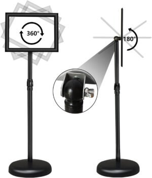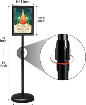 - Adjustable height and viewing angle】The height of this billboard sign can be adjusted between 32″ and 51″, and the display frame can be rotated 180° backward and forward and 360° left and right as needed. It can be displayed horizontally and vertically at multiple angles by rotating backward and forward according to your preference.