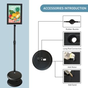 - 【Heavy-duty stable base】This poster stand can be balanced by filling water or sand to increase its weight, providing excellent stability and wind resistance. It is the best choice for both indoor and outdoor use.