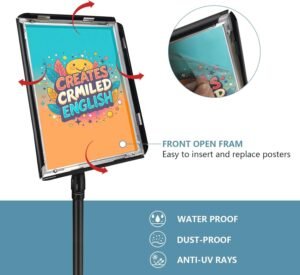 - 【Multiple uses】The sign stand is suitable for various occasions such as trade exhibitions, lobbies, reception areas, restaurants, retail stores, offices, hotels, shops, hospitals, schools, banks, and other public event venues. It stands well on hard surfaces and is suitable for both indoor and outdoor use, perfectly showcasing your poster information.