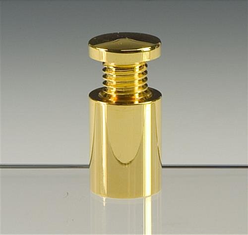 We specialize in standoffs and panel supports for sale to the sign and design industries. Standoffs, such as panel and wall fasteners, mount easily and anyone can install them. First you need to wall mount the standoffs using the included mounting hardware. Place the caps through the holes in your sign panel and screw them tight to the standoffs. That’s it. No other panel mounting system works as easily or looks better than these polished gold panel supports. Buy standoffs to see just how simple it is to create stylish displays.
