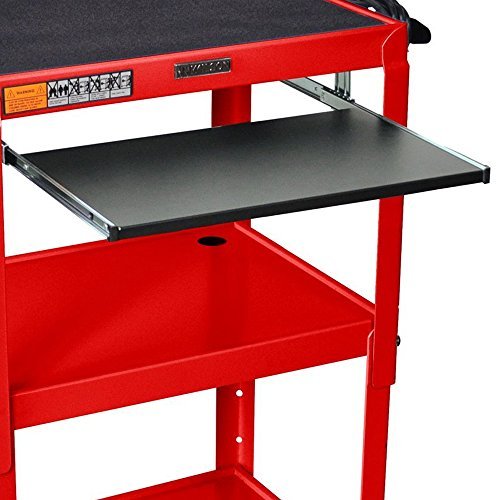 - 1/4″ retaining lip around each shelf. 4″ ball bearing casters, two with locking brake. Optional big wheel models available, optional pull-out keyboard shelf, drop leaf side shelves. Handy pull-out keyboard tray measuring 18 3/4″ x 11 3/4″.