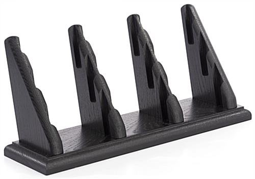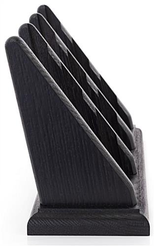 This wooden 9 pocket business card stand offers a contemporary tiered design, perfect for displaying your information in medical offices, law firms, and retail stores. The multiple dividers are great for showcasing an array of professional contacts that people can look through. This wooden 9 pocket business card stand is made of solid oak with a sleek black stained finish to match any interior decor on your desk or counter area. Use this tabletop display to add a more professional, modern presentation to your office. This tiered holder can fit up to 270 standard-sized cards, making it easy to keep it stocked. This solid oak rack is excellent for holding a bulk amount of info, making it convenient for high traffic spaces like restaurants, medical practices, and banks. This black tabletop wooden 9 pocket business card stand is a great way for customers to promptly have the information they need without writing it all down.