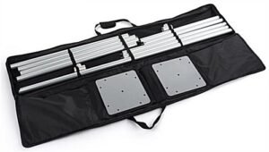 This dual outdoor banner display will allow you to expand your advertising messages across two 30″ x 72″ double-sided signs and make a statement at your next trade show, farmers market, tent sale, and more! We offer a full-color dye sublimation printing process for bright and vivid custom printed graphics that makes your brand message pop. This double-sided dual outdoor banner display has a sturdy weighted base with ground spikes allowing you to safely secure the unit in place outside in inclement weather conditions. Each 30″ x 72″ flag is made of .12mm thick polyester fabric and able to withstand rain and moisture without compromising the overall quality of your personalized graphics. This heavy-duty aluminum and steel frame is entirely modular, allowing you to break it down in seconds and fit it into a convenient carrying case. You can also adjust the unit bewteen 6 feet and 9 feet tall depending on your graphic size for end use flexibility! The highly portable design is ideal for conferences, music festivals, craft fairs, and more, allowing you to bring your advertising materials wherever you desire! This custom printed outdoor banner display is a beautiful way to personalize your space and amplify your marketing for sales, events, new product launches, specials, and more!
