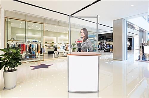 This mobile sneeze guard tabletop provides personal protection against aerosol-based viruses at trade shows, reception desks, and for patrons who are practicing social distancing. The lightweight aluminum frame comes with 3 panels and an inner shelf that can hold up to 13lbs for storage, perfect for sample booths. When traveling from one event to the next, use the zippered nylon carrying case with shoulder strap for easy transportation. This mobile sneeze guard with a brown countertop for personal protection has a transparent hygiene barrier that can be adjusted in height and will not obstruct your view while interacting with customers at supermarkets, doctor’s offices, airports, and more.