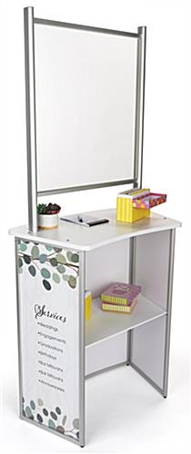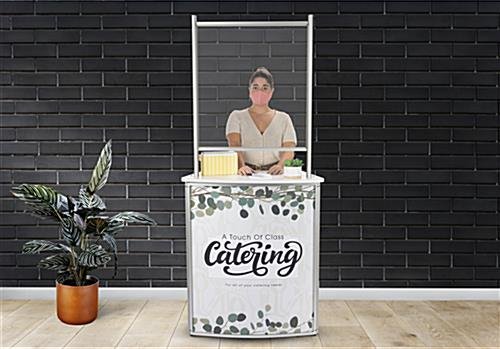 30″w Portable Counter w/ PET Sneeze Guard, Inner Shelf, Custom Printed Panels – White