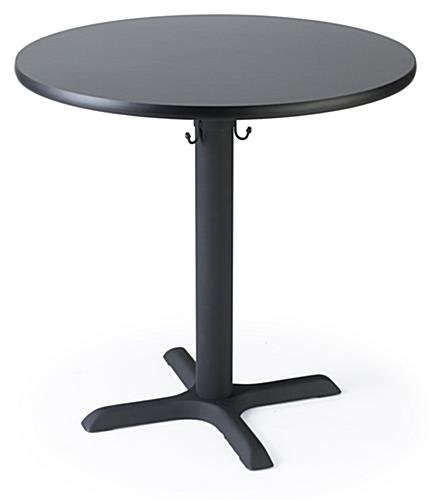 Round Restaurant Dining Table with Cast Iron Bag Hooks and Melamine Laminate Black Finish