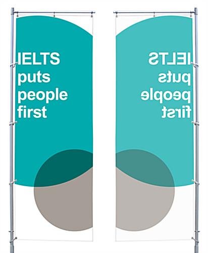 Flags are just as important as the flagpoles they hang from. These advertising flags for the TriPole event flag system are printed on durable white knitted polyester fabric. A specialized silkscreen process, see more details in right side column, utilizes specially formulated inks that resist fading and provide a good through print onto the backside of the flags.