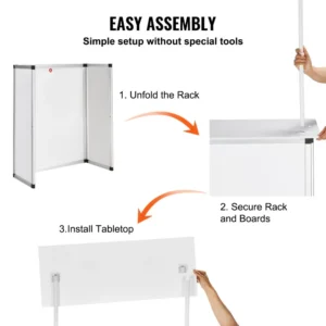 - Tool-Free Assembly Design: Say goodbye to complicated assembly! We’ve designed this exhibition counter stand with convenient and speedy installation. Just follow the 6-step process, and you’re good to go. It’s time-saving and hassle-free, ready for any impromptu display needs.