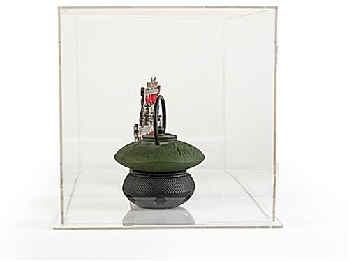 This collapsible acrylic display box is a is a see-through countertop cube that can be used to house floor models, collectibles, and new product concepts to entice visitors into your retail location or trade show booth. All six sides are totally clear, offering an unobstructed, 360-degree view of merchandise. This lightweight collapsible acrylic display box is incredibly easy to transport, thanks to the knock down design. The entire 33″ wide case disassembles and stores flat to be carried or shipped without issue. Setup takes just moments as well. Each clear panel slides and locks into place, creating a beautiful countertop cube in five steps – no hardware or tools necessary. This acrylic display box with lift-off top lid calls attention to your featured merchandise and makes the perfect quick-setup case for any retail showroom floor or industry show booth.