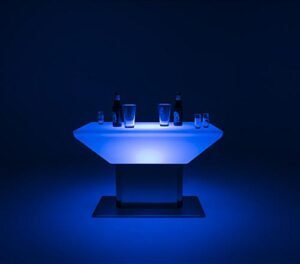 This modern LED glow coffee table is sure to be the life of the party at your next event or trade show appearance, or as a permanent fixture in your bar. Guests will be drawn to the attractive modern design which features a sturdy stainless steel base and tapered, lighted top. Powered by a rechargeable lithium ion battery, this remote-controlled LED glow coffee table provides 10 – 12 hours of multicolor illumination on a single charge. Take the party outdoors without worry thanks to a water-resistant design that stands up to spills and light weather conditions. The 16 different hue options on the included remote ensure that the right look for your event is only a button press away. Have some fun and captivate your visitors with this LED coffee table.