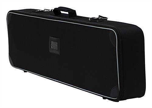 This tri-banner stand is a great way to display your company’s logo, tagline, or messaging within high-traffic areas like trade shows, car rental locations, shopping centers, and more. Captivate the attention of passersby coming from any direction with three-sided full-color graphics that can be individually printed on each side of this portable sign using our high-quality dye sublimation printing method. This tri-banner stand with collapsible design is constructed of an aluminum frame and durable steel base that can endure being used in a busy environment. Ideal for traveling events, each portable 360 degree display easily collapses for quick assembly and disassembly! The custom printed polyester knit panels on this tri-banner stand securely hook onto the frame through grommets for an easy application that results in a wrinkle-free appearance. Use the included black polyester carry bag to conveniently transport this lightweight, collapsible three-sided sign to traveling events or store away safely when no longer in use. Customize this portable 360 degree display with eye-catching visuals to produce an impactful marketing tool for your brand that will stand out amongst any crowd!