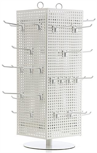These 4” white peg hooks are designed for use with retail pegboard displays. Each of the accessories is finished with a powder coated glaze for a smooth, sleek look. The 4” white peg hooks have a durable metal design for long-lasting use. Pegboard displays can be used by retail stores, hardware suppliers, and more!