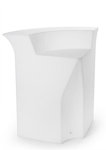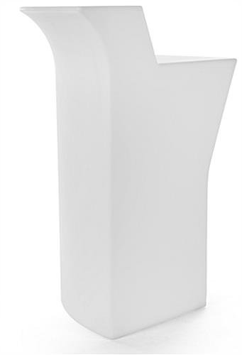 This modular LED corner bar is a surefire way to get the party started in your nightclub or cocktail lounge. A lighted interior allows this glow furniture to bathe any darkened space in one of 16 gentle tones that help set the mood. This rechargeable modular LED corner bar can operate for up to 12 hours on a single charge to keep the party going all night. In addition to the solid lighted color mode, flash, strobe, fade, and smooth transition options can further differentiate your unique setup. Step out of the nightclub and set up for an outdoor event, thanks to the water-resistant design. Pair this LED corner bar with matching glow furniture to create a unique, curved drink counter that will wow your guests.