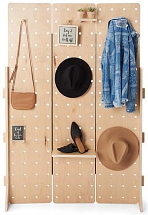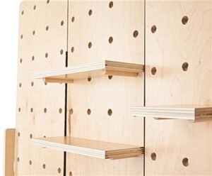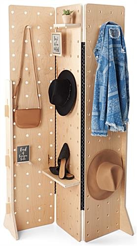 47 x 36 Pegboard Shelving Display, Wall Mounting, Three Panel Design – Natural