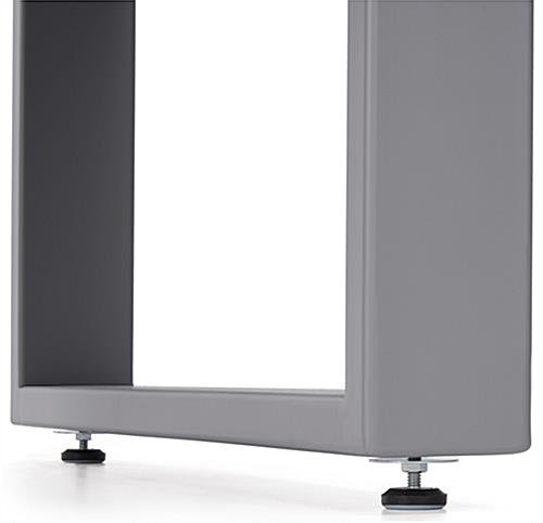 This modern tempered glass display counter with locking doors and LED lighting will be the perfect store display to securely showcase your valuable retail merchandise. The store fixture is made of durable steel and melamine, providing years of service. This tempered glass display counter ships fully assembled, eliminating assembly hassle. The locking mirrored doors reflect the back of the showcased items, giving your customers a full view of the wide variety of products. The LED lighting can be turned on/off with a rear switch and illuminates high-end merchandise from the top down. Adjustable feet provide stability on uneven flooring and mean that your display can be placed in a wide variety of locations throughout your retail store. This gray glass display counter offers a modern showcase for jewelry, boutique merchandise, and collectibles in a retail shop or museum store setting.