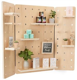 18 x 35 Pegboard Shelving Display, Countertop, Collapsible Design – Natural