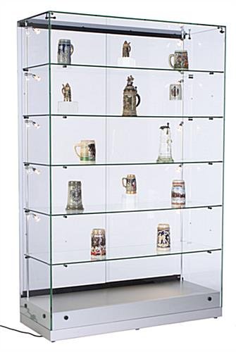 This wide LED display cabinet will add style and protection at your retail establishment. The showcase includes 10 eco-friendly bulbs to illuminate your items evenly. The display cabinet with accent lighting also has 2 sliding doors and a plunger key lock that’s attached at the bottom. The frameless unit includes 5 shelves which can be adjusted or taken out to include items that are larger in size. This display cabinet will ship to your retail store fully assembled for an easy placement on the floor. A glass showcase with accent lighting will complement your business’ décor and give your customers an eye-catching exhibit!