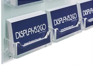 Design a full color logo to be printed on this business card wall mount with custom header. Each unit features 48 acrylic pockets, offering space to accommodate a large quantity of materials. Use the business card wall mount with included hardware to strategically place the unit in areas with high traffic. The acrylic pockets are clear and offer passersby an unobstructed view of contents while also blending well with surroundings. Create your own unique design with the included template and the full color finished product will be printed using UV technology. Place this business card wall mount in lobbies, waiting areas, event areas, and more!