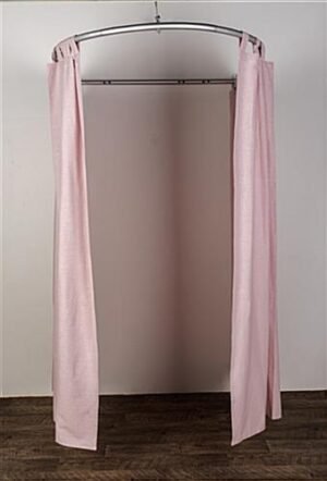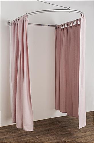This semicircle changing room kit is a perfect way to add privacy and isolation to any retail store, spa, exam room, or office space! The unit comes with wall-mounting brackets and support cables, all you will need in addition is the proper screws and anchors for your specific surface. This lightweight semicircle changing room kit is made of silver aluminum tubing with a 1.25″ outside diameter. The frame is easy to assemble with a convenient push pin design and number labels to guide you for a leisurely setup. The overall dimensions of this unit are 48″ wide by 60″ deep, providing you with ample space to add a stool, mirror, small table or chair and create a functional area within your exam room, spa or boutique. Curtains are not included with the aluminum frame, but a wide range of options are feasible with this unit from rod pocket to curtain rings and tie tops. As long as the drapes are able to fit around the pipe, the options are endless! This wall-mounted semicircle changing room kit is a logical solution for public spaces that are looking to create more privacy for their customers!