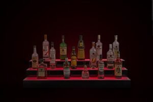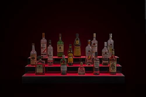 48″w 3-Tier Acrylic Bottle Organizer for Countertop Use, Interior LED Lights – Clear