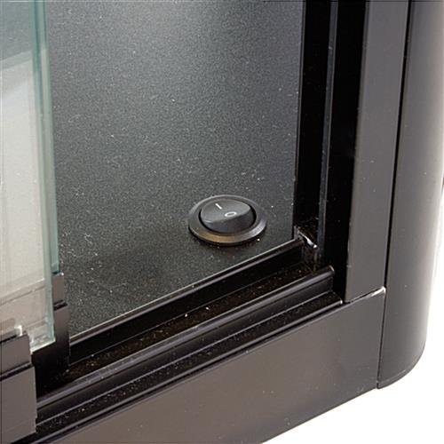 Free up floor space in your store by placing items in this wall mounted LED display cabinet which features adjustable glass shelves and overhead lighting. Robust aluminum framing promises long lasting use of this case in any busy environment. These lockable display cabinets come with a plunger and key set that offers peace of mind knowing your merchandise is safe from accidental breakage. Each of the 4 tempered glass shelves sits on adjustable rubber padded clips to hold larger items with a maximum load capacity of 30lbs. For your convenience a power switch is located inside the sliding glass doors to turn the lights off without having to search for the outlet. Grab a display cabinet for your business to take advantage of this unique angled case design and efficient lighting system!
