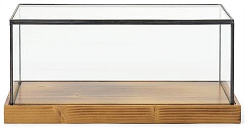 This 12″ x 5.5″ rustic glass countertop showcase is an excellent size for moss, succulents, crystals, geodes or other low maintenance plants. This black copper-plated display gives an antique look to your retail or gallery exhibits. This small rustic countertop showcase will be a modern way to arrange your boutique’s jewelry pieces and memorabilia. The convenient lift-off style cover makes it easy to keep your collectibles and other items on display dust-free. The 1″ thick rubberwood base has an antique finish and a deep groove carved around the perimeter to keep the glass topper firmly in place. This trendy glass countertop showcase will quickly modernize the way that you exhibit your collectibles, botanicals, crystals, and store merchandise.