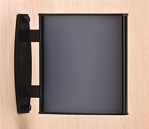 These interior signs are perfect for communicating pertinent customer information. The double-sided display comes in a modern black finish and accommodates (2) 5-3/4″ x 6″ prints. The flag design allows for dual-sided viewability and a non-glare lens, allowing graphics to be visible from either direction of travel. These interior wall signs also enable fast and easy graphic changes without the need for hardware to change out your graphics. You can also conveniently change your graphics without detaching the sign from its mounting surface. Our interior wall signs are constructed from high-quality aluminum to ensure longevity. These interior wall signs meets ADA height and reach standards. Our wall signs are available in various sizes and are the perfect way to direct visitors and guests.