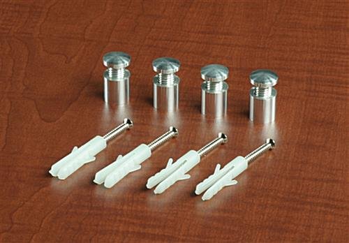 Installing these standoffs is straightforward. 7/16″ holes are required in your sign panels for mounting. Screw the cap through the panel and into the barrel. After hand-tightening the entire assembly your work is done! These small aluminum standoffs can easily handle material up to 1/4″ thick. Mounting hardware is included with your order. These sign mounts are economic standoffs. Elevate the quality of your signage installations with these aluminum standoffs!