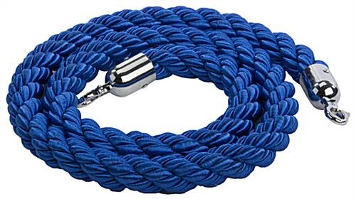 This post rope is intended for our chrome stanchions. It is a blue twisted nylon material, which adds elegance to barriers. Stanchions with rope are great for crowd control and line formation at events, banks, casinos or offices. The barriers will be 6ft apart using this belt. At each end of the rope are polished chrome hooks that clip onto the pole. Crowd control stanchions can be used in retail or commercial environments.