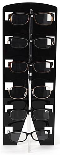 Our acrylic countertop eyewear shelving is a great way to showcase sunglasses and eyeglasses in your department store, gas station, pharmacy, or boutique. Each retail display holds up to 6 optical frames allowing you to exhibit various styles and designs. This collapsible acrylic countertop eyewear shelving has an easy no-tool, no hardware assembly for seamless out of box use. This retail display’s knockdown design is ideal for street vendors, pop-up shops, and check out counters to help capture those last-minute sales. This compact optical unit’s overall dimensions are 6.5″ W x 18″ H, allowing you to showcase this on several surfaces without taking away from your space’s overall aesthetic. This modern acrylic countertop eyewear shelving will make it easy for customers to browse the latest sunglasses and eyeglasses styles and direct the sale without overwhelming them with too many options at once.
