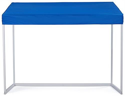 This 6 foot replacement canopy for SMTMS6FTBL frame boasts a beautiful blue color and is made of 100% polyester fabric for a durable and long-lasting design. This awning has an IP04 rating and hydraulic pressure 1500 making this a suitable design for outdoor events. Keep your farmers market, trade show or retail store displays looking fresh with new canopies over time. Secure your awning to the market stall frame with the hook and loop fasteners featured on the inside. This 6 foot replacement canopy for SMTMS6FTBL frame will effortlessly draw attention to your company’s event booth.