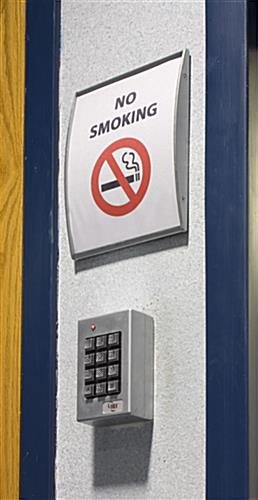 This graphic display, door sign that mounts to a wall is an affordable and professional way to showcase notices or name plates. They can be used to mark offices and rooms, or as wayfinding signage. Customers can easily create and print messages or logos for the door sign using a regular office printer. The wall frames feature double-sided VHB tape on the back, enabling users to adhere the displays onto any flat surfaces to identify any area. This silver door sign, like a name holder, can also be used as a warning sign frame, displaying “No Smoking” or “Emergency Stairs” signs. The curve designed of this product will make your displayed graphics stand out. The office signholder can be attached to the wall or door vertically or horizontally, as a result of the double-sided tape backing.
