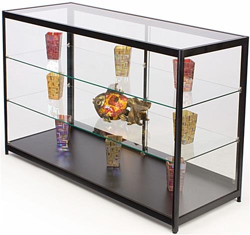 These 5′ jewelry counters offer a safe place to both store and display articles of value! The retail fixtures have simple styling, leaving the spotlight on items inside the cases. Jewelry counters that stand 38″ tall, also known as glass cabinets, are perfect for retailers, but can also be found in museums, business lobbies or even schools. Any location that is looking for an affordable, easy-to-use and neutrally-styled means of showcasing artifacts, collectibles, fine china, sports memorabilia and more, will find this display very useful!