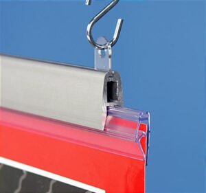 This banner holder is an ideal retail hanging display to use in your store. The retail hanging display features a bottom gripper to keep posters tightly drawn. The plastic eyelets slide on the top rail, giving you plenty of leeway while hanging. The retail hanging display is 72″. Poster grippers, banner grippers, and other retail hanging displays provide your establishment with an upscale way to promote sales. These banner holders, retail hanging displays use snap open clips. To insert your graphic, flip open the clip, insert the graphic along the channel, and then simply close the clip to secure it in place. These retail hanging displays, especially banner grippers and poster grippers, alert your customers of sales.