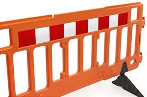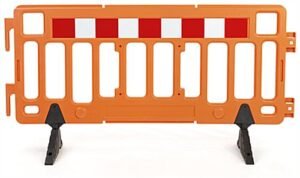 76″w x 40″h Interlocking Crowd Control Barrier, HDPE Plastic – Orange